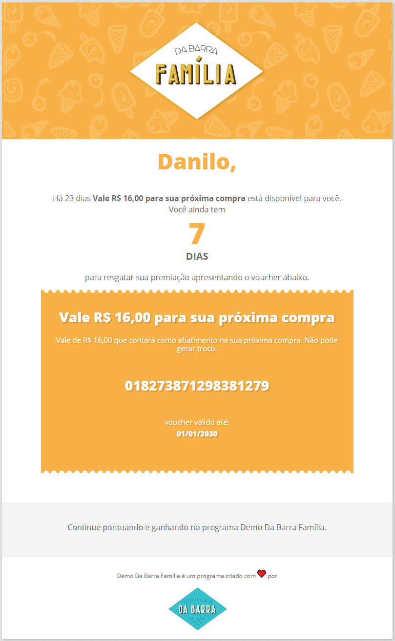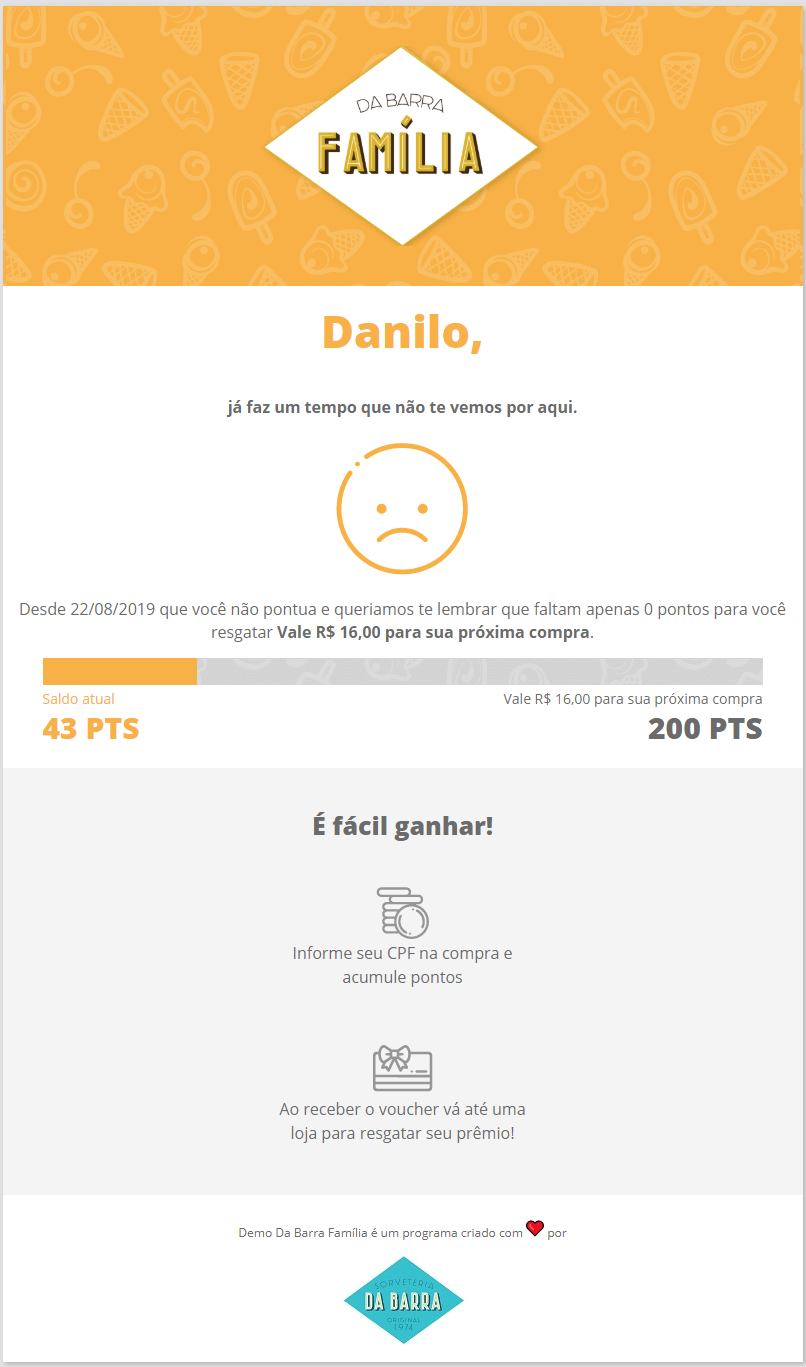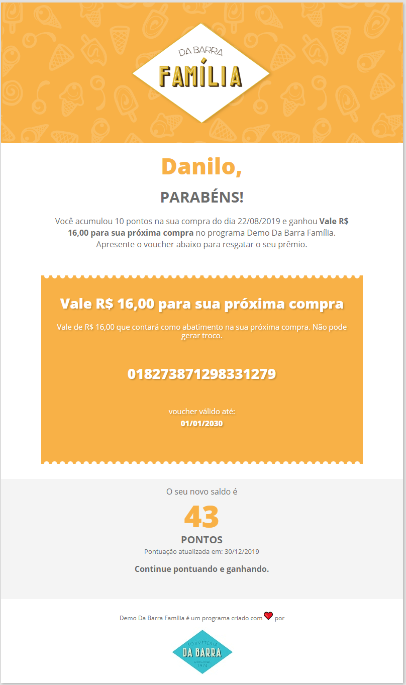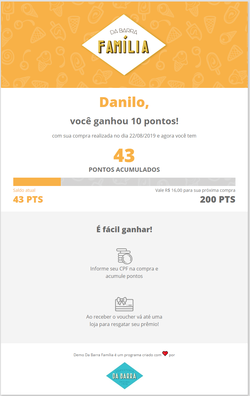 • O resgate acontece automaticamente quando o cliente alcança a quantidade de pontos estipulados e o sistema dispara as comunicações para informar.